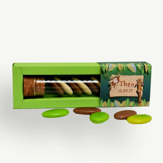 10 Boites à dragées personnalisées Jungle vert et marron | modèle louisa