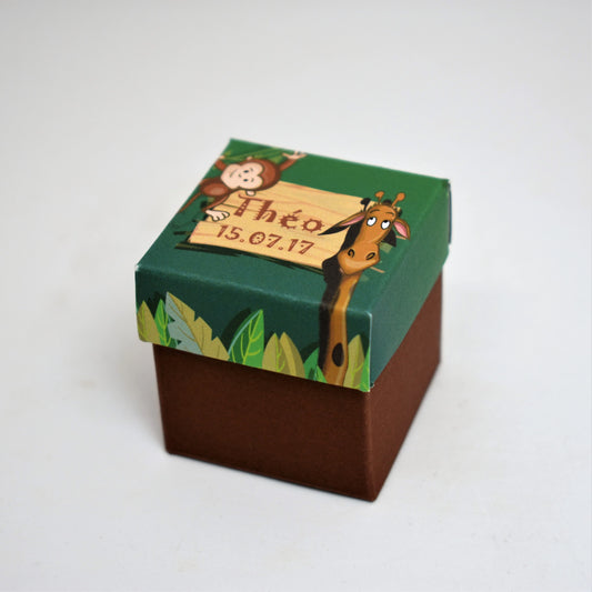 Boite à dragées personnalisée Jungle marron | modèle cube uni