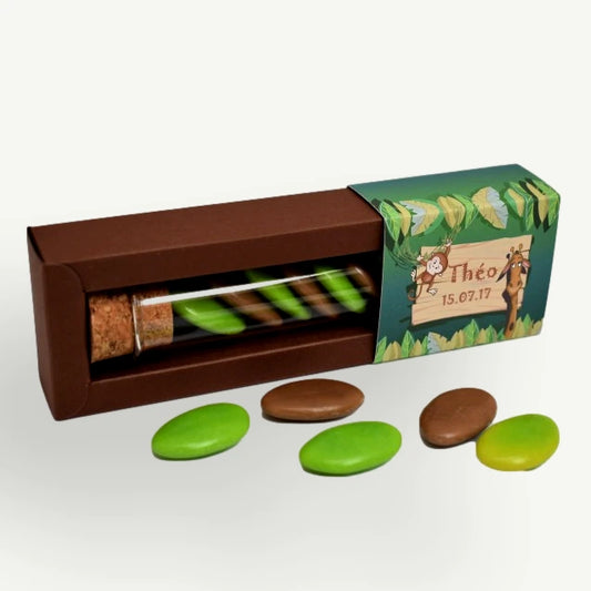 Boite à dragées personnalisée Jungle marron | modèle louisa