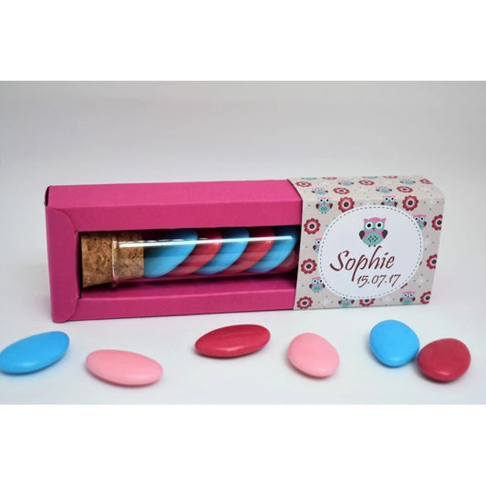 Boite à dragées personnalisée Petite Chouette Fuchsia | modèle louisa